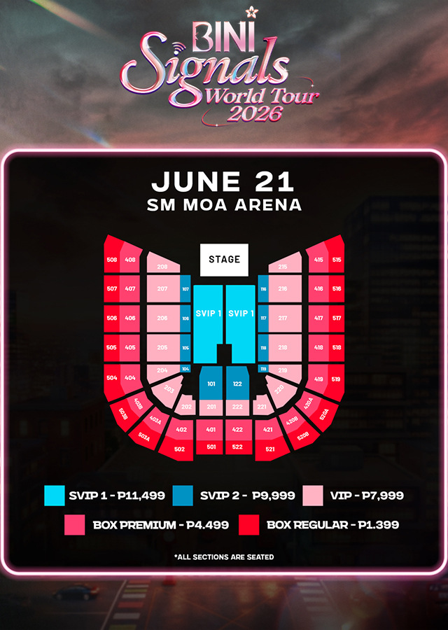 The BINI Signals World Tour Kick Off begins at the Mall of Asia Arena.