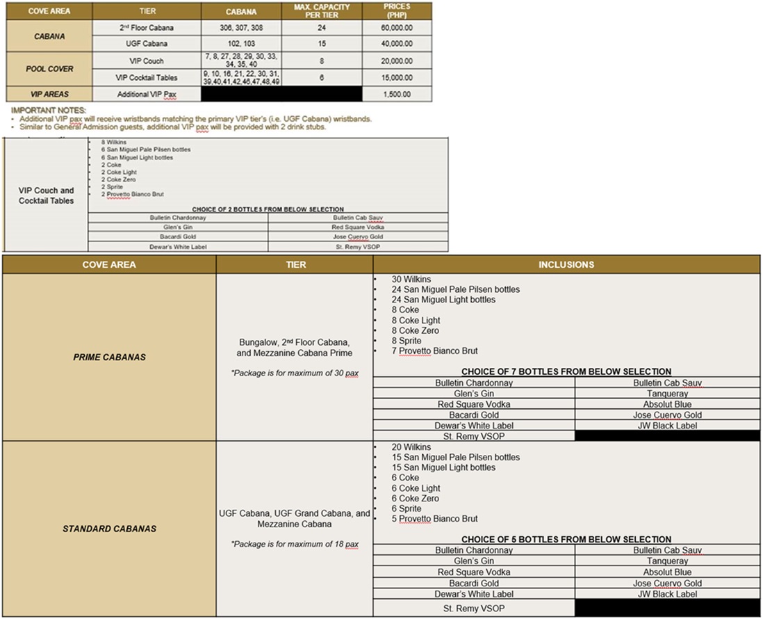 • VIP COCKTAIL TABLES (Good for 6PAX)